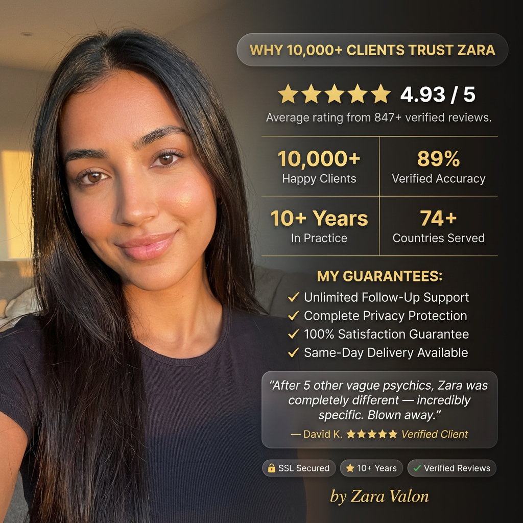 My documented accuracy rate is over 89% across 10+ years of practice. But here is what that really means: I only share what I see clearly, never what people want to hear. Some psychics inflate hope to make you feel good. I tell you the truth because that is what actually helps you. My clients consistently tell me I describe specific details I could not possibly know. I cannot guarantee you will like what I see, but I can guarantee you will get the truth.